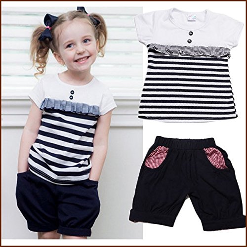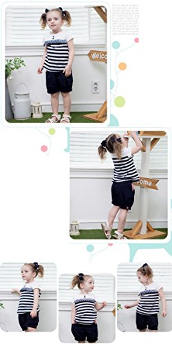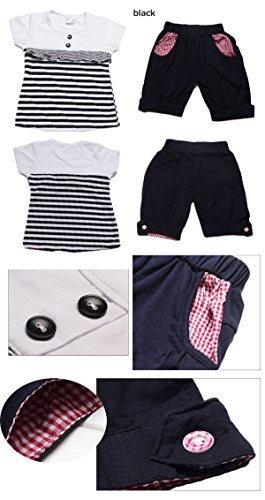 即納(韓国スタイル子供服) 女の子 セットアップ キッズ ストライプ半袖+ポケット チェック柄ショートパンツ 上下セット100cm 110cm 120cm 130cm 140cm black,120cm