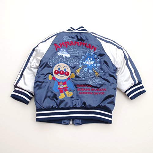 - それいけ!アンパンマン 防寒ジャケットのスカジャンタイプです。アンパンマン&バイキンマンの刺繍入り、前ファスナー仕様です。肌触りの良いポリエステルサテン素材を使用、中綿入り、ポケット付きです