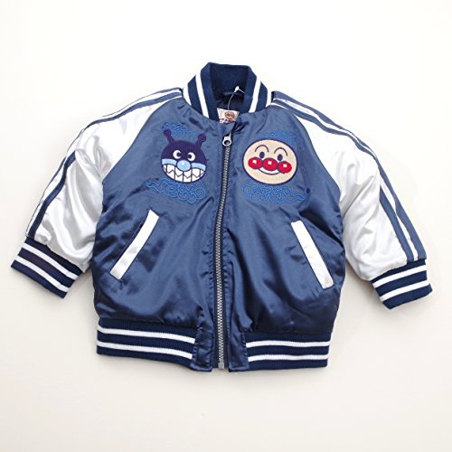 - それいけ!アンパンマン 防寒ジャケットのスカジャンタイプです。アンパンマン&バイキンマンの刺繍入り、前ファスナー仕様です。肌触りの良いポリエステルサテン素材を使用、中綿入り、ポケット付きです