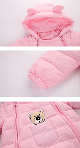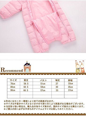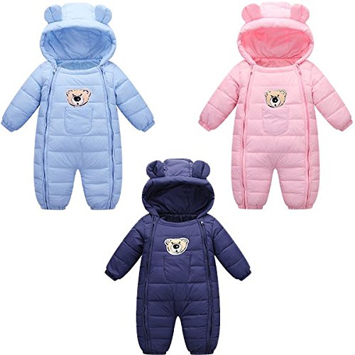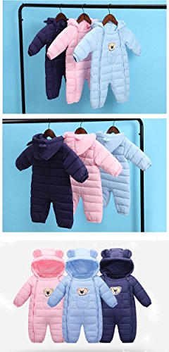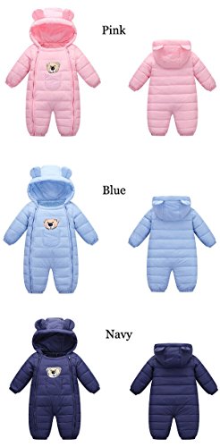 70-90cmベビーダウンジャンプスーツ カバーオール 耳付 フード付き中綿 軽量 ダウン使用 かわいい熊の刺繍あり ベビー女の子 男の子 Navy,80