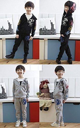 (韓国スタイル子供服) キッズセットアップ 男の子上下セット パーカー +長パンツカコイイプリント付き 全2色100cm 110cm 120cm 130cm 140cm gray,110