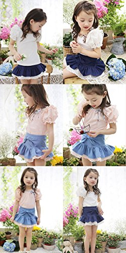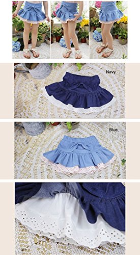 即納子供 スカートキッズ 女の子 デニム柔らかい 優しい ジーンズ リボン レースフリルデザイン 全2色 Navy,140