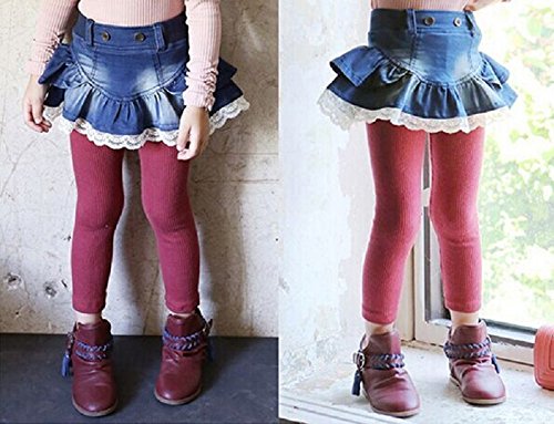 レギンス 付き デニム スカート 子供 服 キッズ パンツ 女の子 ガールズ ベビー 用 90 100 110 120 130 cm センチ カジュアル 2色 (110, レッド)