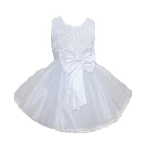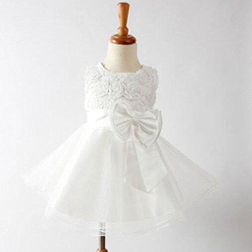 【ノーブランド 品】女の子 キッズドレス 蝶結び ベルト付き プリンセスドレス ウエディングドレス ファッション キュート ホワイト 身長全6サイズ - 90cm
