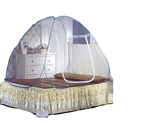 蚊帳 虫よけ かや ワンタッチ式 簡単 広がる 設置 ベッド 上 自立 赤ちゃん 安心 防ぐ 風通し ファスナー 開閉 (白・75cm×85cm×110cm)