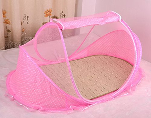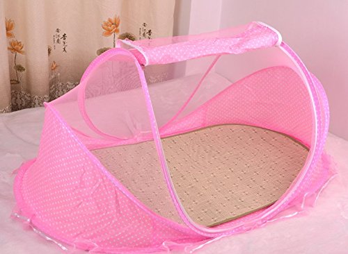 Cute Minor子供用蚊帳 夏必須の物 ベビー用蚊帳 ワンタッチ 畳めてコンパクト 携帯 旅行 (Bピンク 茣蓙付け)