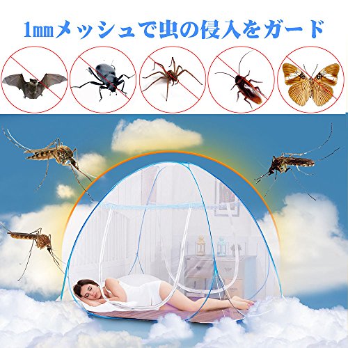 - ワンタッチのデザインで、面倒な組み立て不要、簡単にセッティングが可能できます。細かいネットが蚊の侵入を防ぎます。