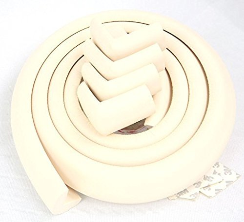 ベビーケガ防止用 コーナークッション 全長5m コーナーガード 4個セット 両面テープ付き セーフティーグッズ 加厚型 (ベージュ)
