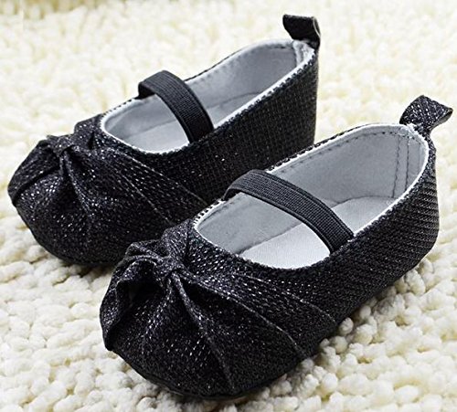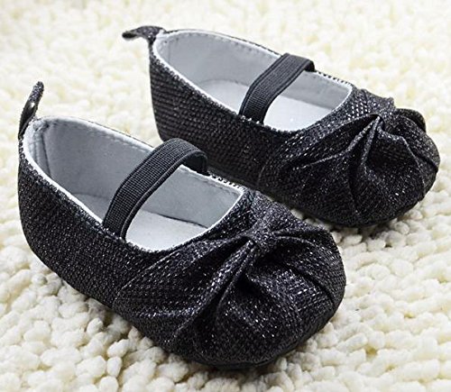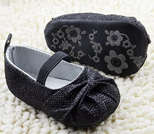 ベビーシューズ ファーストシューズ バレーシューズ風 ゴム リボン ブラック 2649 (13cm)