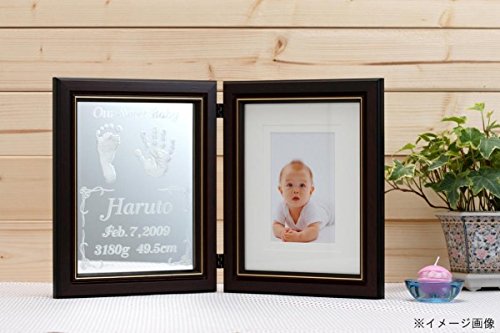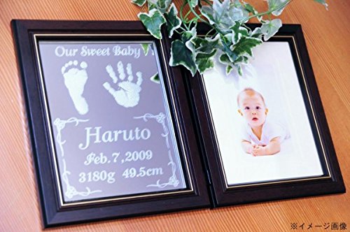 - フレームは折り畳み式なのでスペースに合わせて飾れます。 左ミラーには赤ちゃんの手足型と誕生データを彫刻! ! 右面は記念写真を飾れるフォトフレームになっています。