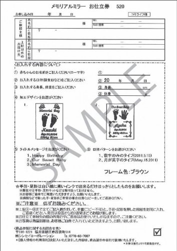 ベビーメモリアル・出産祝い メモリアルミラー (赤ちゃんの手足型イン写真立て) 520 お仕立券タイプ