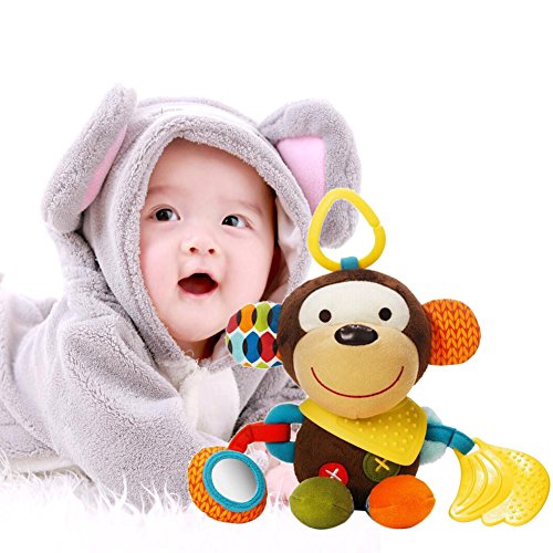 ふわふわ ラトル おもちゃ がらがら 可愛い 動物 柔らかい ぬいぐるみ (サル)