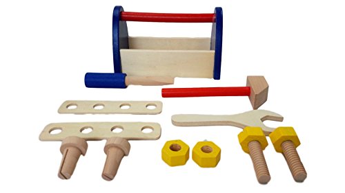 - 接着剤不要!ハンマー、ネジ回し、スパナが付いています。クギを叩いたり、ねじを回したりする手先遊びを通じて、手先の器用さが身に付きます。