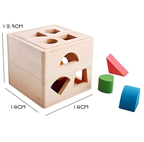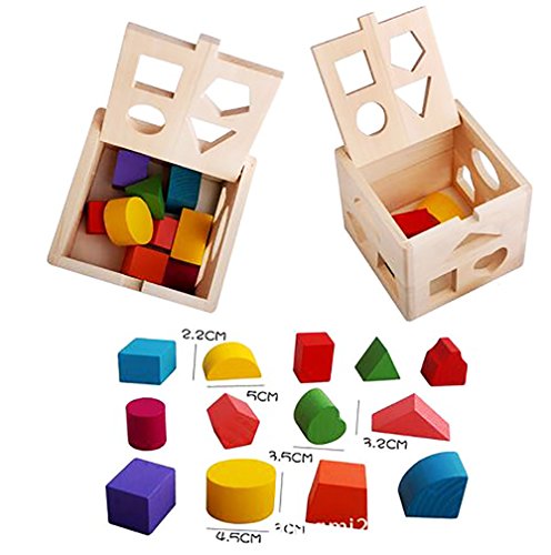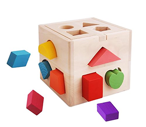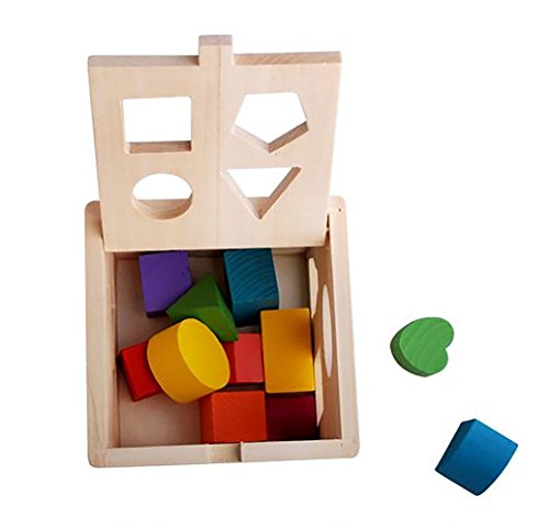 ノーブランド 立体型パズルボックス 木製 積み木 ブロック カラフル色 型はめ 色彩感覚 立体感覚 興味図形認知 形合わせ はめの遊び 木のおもちゃ 知育玩具 子供 キッズ