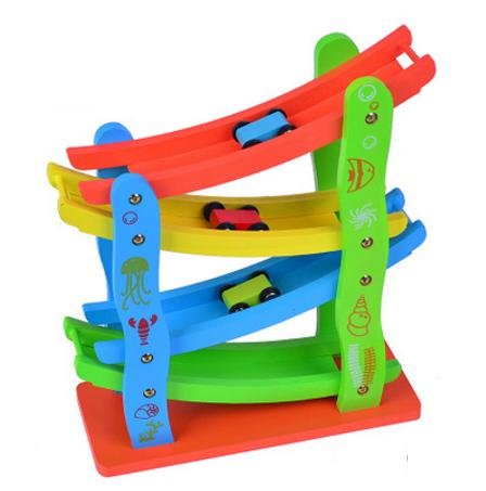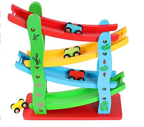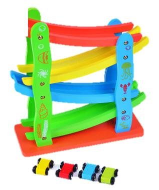 MeRaPhy ) 子供 向け おもちゃ カラフル スロープ コースター 滑空車 speed cute car 軌道 4段 車 4台付き 幼児 出産祝い 誕生日 クリスマス プレゼント