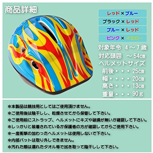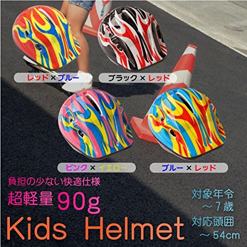 ヘルメット 子供用 キッズ 超軽量 安全 頭囲/~54cm 4歳~7歳 男女 ブルー/レッド ブラック/赤 ピンク/黄 自転車 等 @a538 (ブルー/レッド _85208)