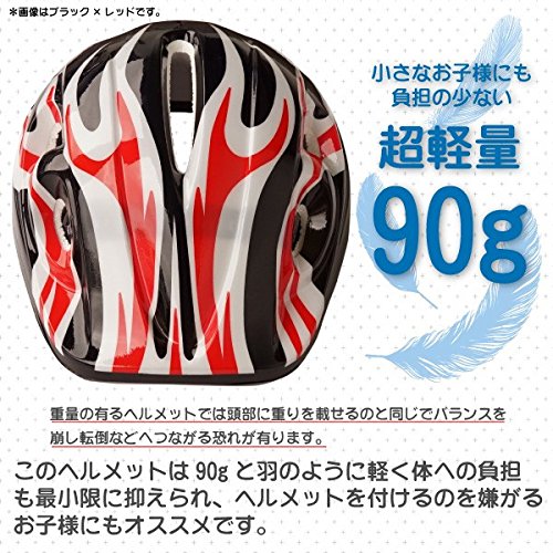 ヘルメット 子供用 キッズ 超軽量 安全 頭囲/~54cm 4歳~7歳 男女 ブルー/レッド 自転車 等 【商品説明】 スケートボードやキックボード、自転車等路上で遊ぶ際に必需品な子供用軽量ヘルメット。 素材に発泡素材を採用し、約90gの超軽量に仕上げました。小さなお子様でも帽子感覚で首に負担なく着用できます。 空気を取り入れる穴が開いていますので不快な蒸れを逃し快適にご使用頂けます。 【商品内容】 ■ 子供用ヘルメット 【商品詳細】 ■ ブルー/レッド ■ 対象年令 : 4~7歳 ■ 対応頭囲 : 約~54cm ■ 商品サイズ : 前後/25cm 幅/20cm 高さ/13cm 重量/90g *使用時の注意事項 ■ヘルメットが頭に対して水平になるようにして下さい。額が出る斜め被りは転倒時顔を負傷する原因となります。 ■あご紐の三角部に耳が入るようにして下さい。 ■あご紐は指一本程度入る余裕を持たして調節して下さい。 ■頭を軽く振ってヘルメットが動かないか確認して下さい。