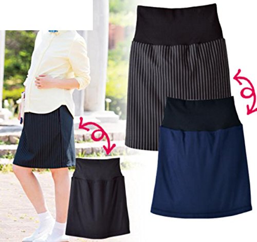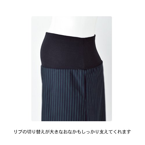 ストライプのタイトシルエットが、おしゃれ度バツグン。無地とのリバーシブルなので、コーディネートや気分によって使い分けて。伸びのよいリブが大きくなったおなかをしっかりホールドしてくれます。