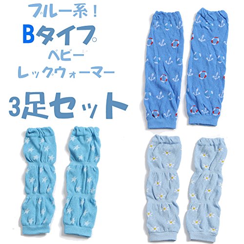 ベビー レッグウォーマー コットン ヘンプ 3足セット 肌に優しい 天然 コットン 赤ちゃん アトピー 安心 冷え 日焼け対策 肌を守る ベビーレッグウォーマー オーガニックコットン 引き揃え オーガニックコットン ブルー (Bタイプ)