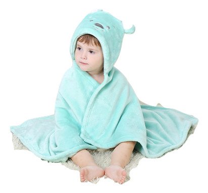 【ベビー】動物着ぐるみ風ポンチョ 毛布 100cm 水色のくま