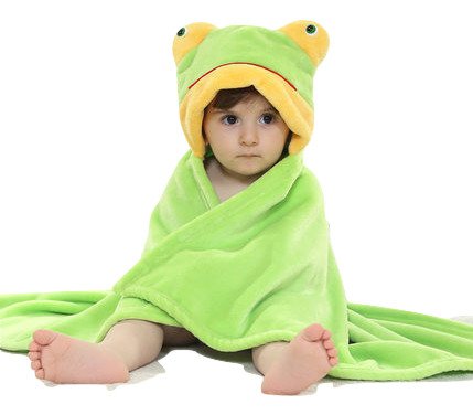 【ベビー】動物着ぐるみ風ポンチョ 毛布 100cm カエル