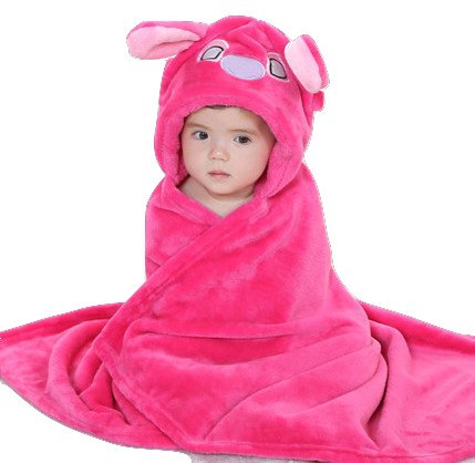 【ベビー】動物着ぐるみ風ポンチョ 毛布 100cm ピンクモンスター