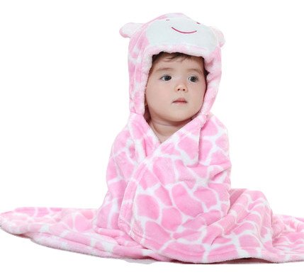 【ベビー】動物着ぐるみ風ポンチョ 毛布 100cm ピンクのきりん