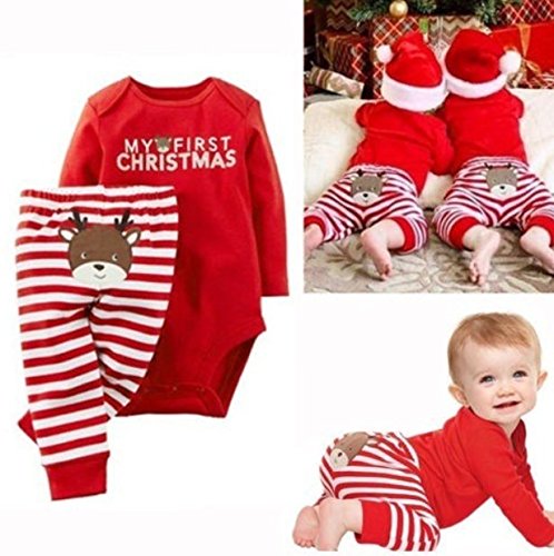 - 盛大なクリスマスを迎えのために、赤いサンタクロースモチーフがとっても可愛い上下セットのベビー服が登場しました。