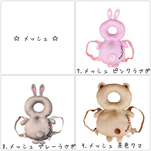 yuzuyu_shop 赤ちゃん 子供 頭保護 転倒防止 枕 クッション リュック 涼しい 夏 メッシュ グレー ウサギ