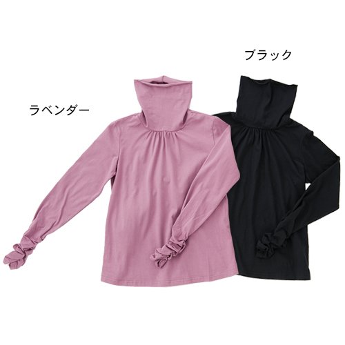 袖口のシャーリングがシンプルデザインのアクセント。ギャザーを入れてゆとりを出しているので、バストやおなかにやさしくフィットします。