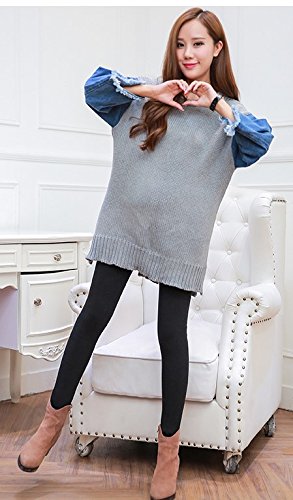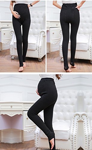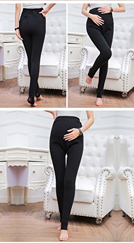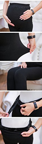 【ginza福ya MT-43】あったかボアの裏起毛 腹部調整ゴム付き ストレッチ マタニティ レギンス タイツ 10分丈 超あったか 保温 ブラック (フリーサイズ, 杢チャコール)