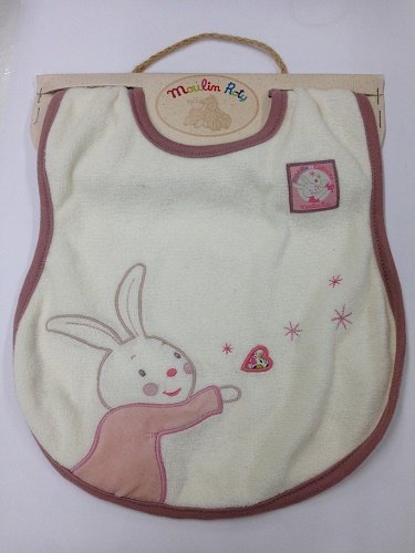 ムーランロティ ミルティーユ&カピュシーヌシリーズ のビブです。かわいいうさぎさんと一緒にお食事しましょう。