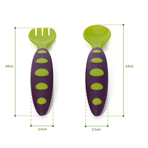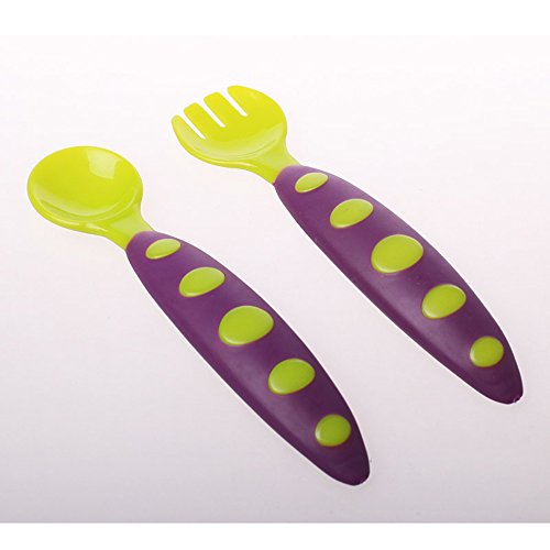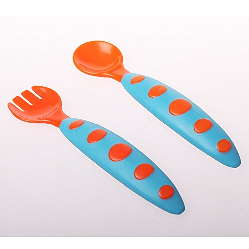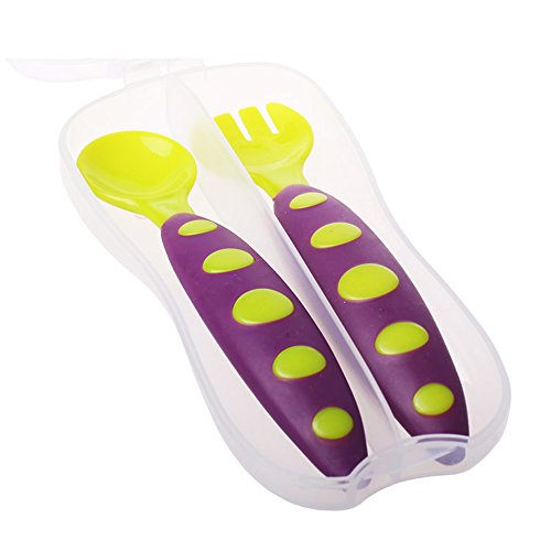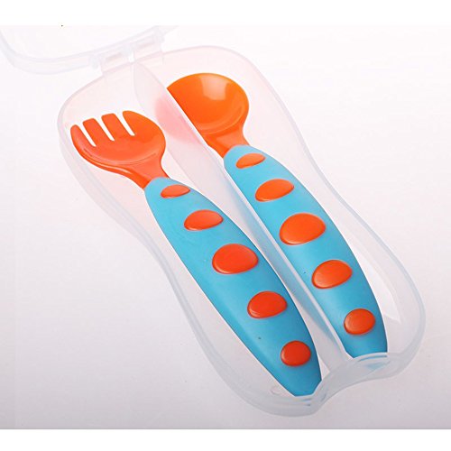 安全なプラスチック製のベビースプーン+フォークカラフルなアンチスキッドハンドル学習食器子供用収納ボックス 2个/セット 色はランダム