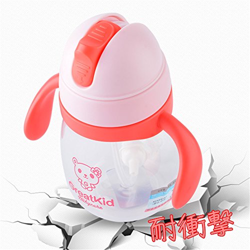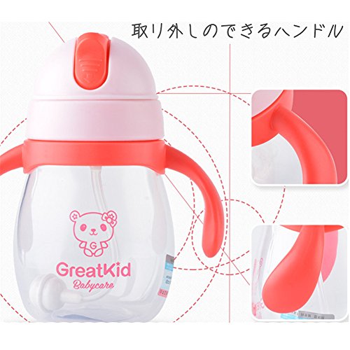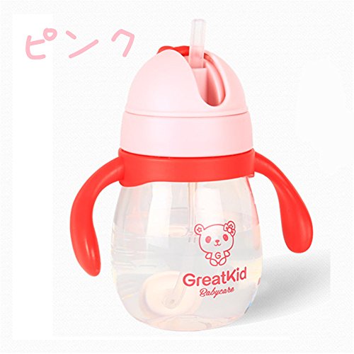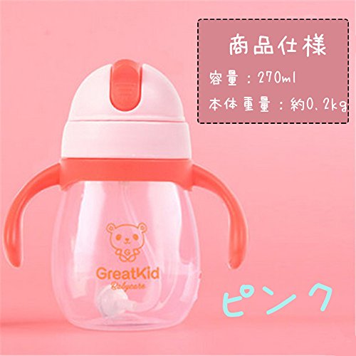 ベビーマグ 水筒 カラフル ストローマグ ベビーマグ 水筒 かわいい 持ちやすい ハンドル付き 漏れにくい カチッと閉まってもれません 大容量 (270ml, ピンク)