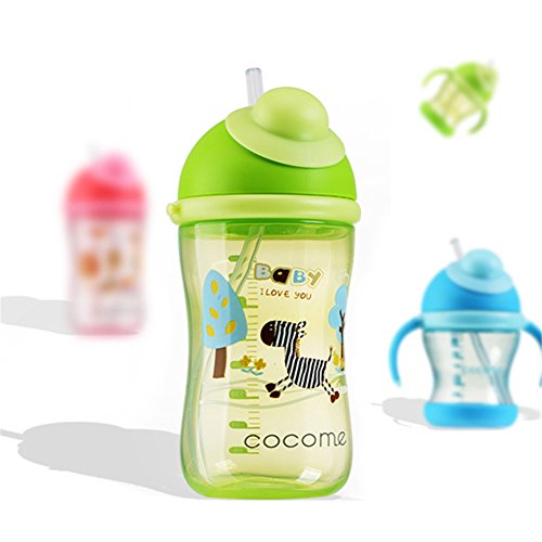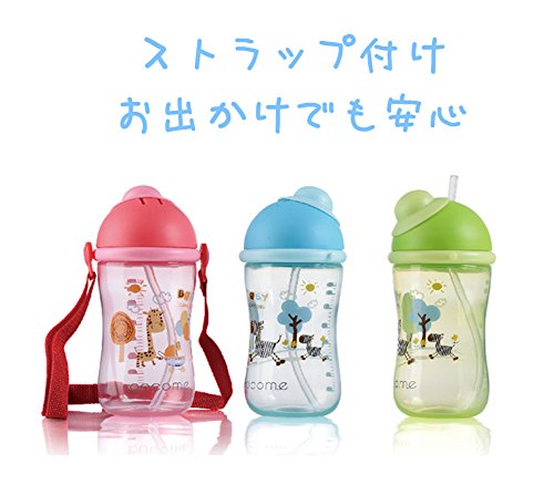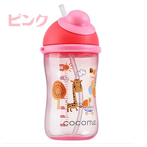 ベビーマグ キッズ ストラップ 水筒 漫画柄 持ちやすい ストローマグ ベビーマグ 水筒 かわいい ハンドル付き 漏れにくい カチッと閉まってもれません (18*6.8cm(380ml), ピンク)