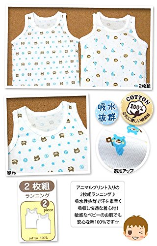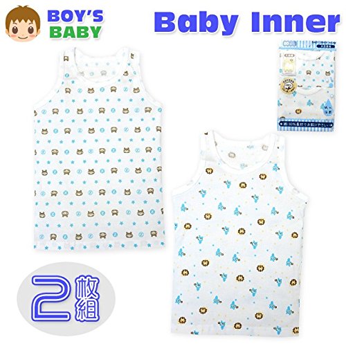 (2枚組/95cm)ベビー 肌着 ランニング 男の子 2枚組 お肌に優しい綿100% 吸水抜群 アニマルプリント 総柄 男児 ベビー 【ノーブランド品】