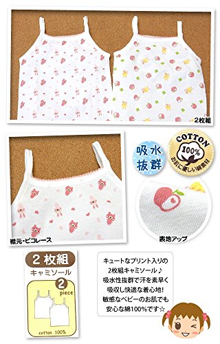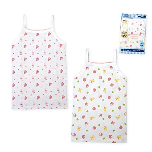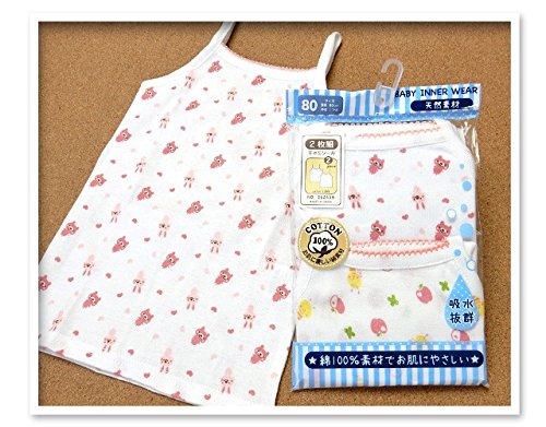 (2枚組/80cm)ベビー 肌着 キャミソール 女の子 2枚組 お肌に優しい綿100% 吸水抜群 アニマルプリント 総柄 女児 ベビー 【ノーブランド品】
