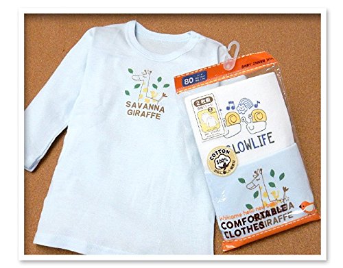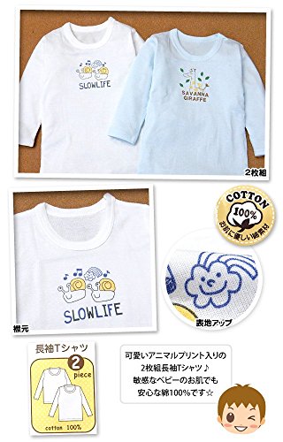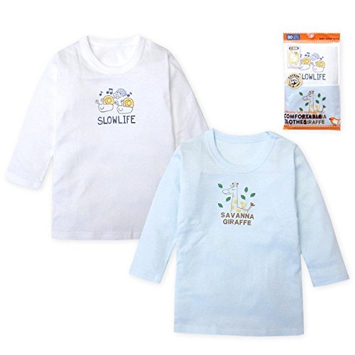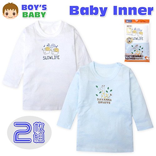 (2枚組/80cm)ベビー シャツ 肌着 長袖 男の子 2枚組 綿100% アニマルプリント 男児 ベビー 【ノーブランド品】