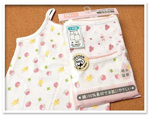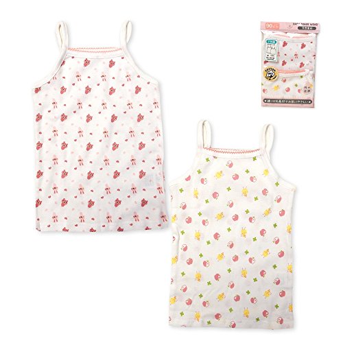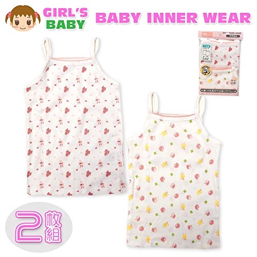 (ピンク/90cm)ベビー 肌着 キャミソール 女の子 当店おまかせ 2枚組 綿100% フライス 吸水 総柄プリント 下着 女児 ベビー 【ノーブランド品】
