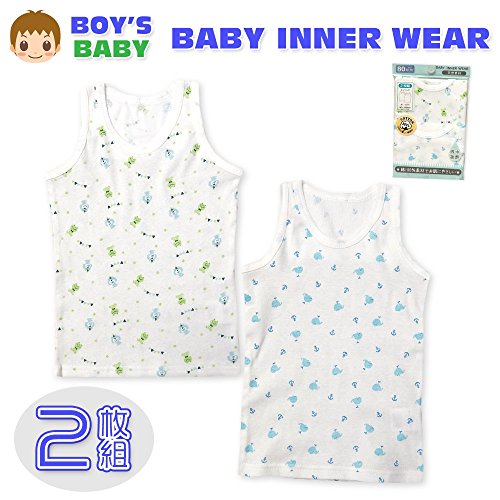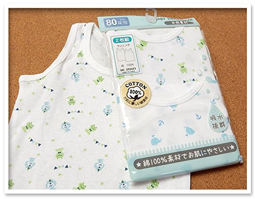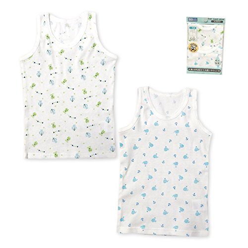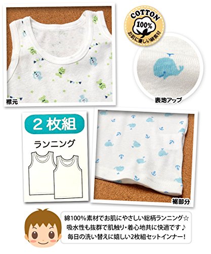 (サックス/95cm)ベビー 肌着 ランニング 男の子 2枚組 綿100% フライス 吸水 総柄プリント 下着 男児 ベビー 【ノーブランド品】
