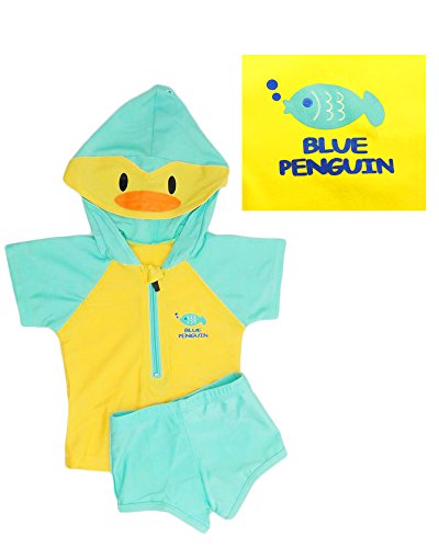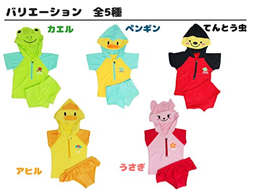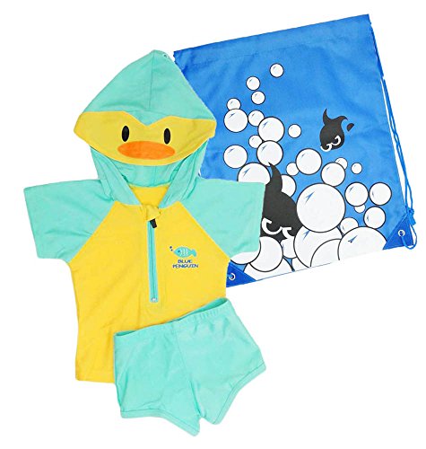 キッズ フード付き 水着 上下セット ナップザック 3点セット 動物 半袖 全5種 ペンギン 90