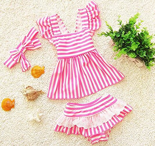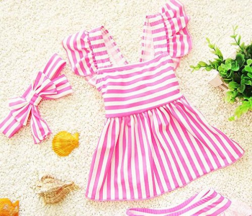 9408子供水着子ども 女児 女の子用ワンピース水着 ベビー水着キッズみずぎ スイミング ウェア ジュニア 小学生 タンキニ (XS, ピンク)