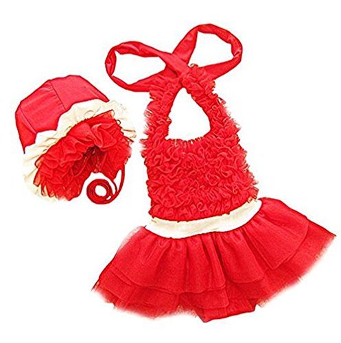 9402子供水着 女児 女の子用ワンピース水着 ベビー水着キッズみずぎ スイミング ウェア ジュニア 小学生 (2XL, 赤)