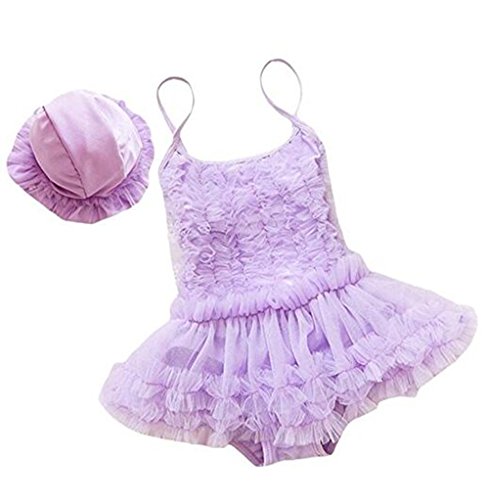9406子供水着 女児 女の子用ワンピース水着 ベビー水着キッズみずぎ スイミング ウェア ジュニア 小学生 (2XL, パープル)