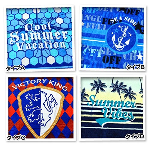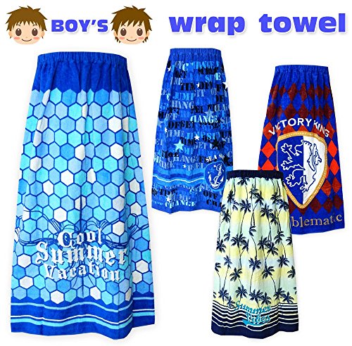 (タイプC/80X120cm)子供 ラップタオル 男の子 綿100% 総柄プリント ネームタグ付 ハニカム柄 ロゴ アーガイル ヤシの木 男児 キッズ ジュニア