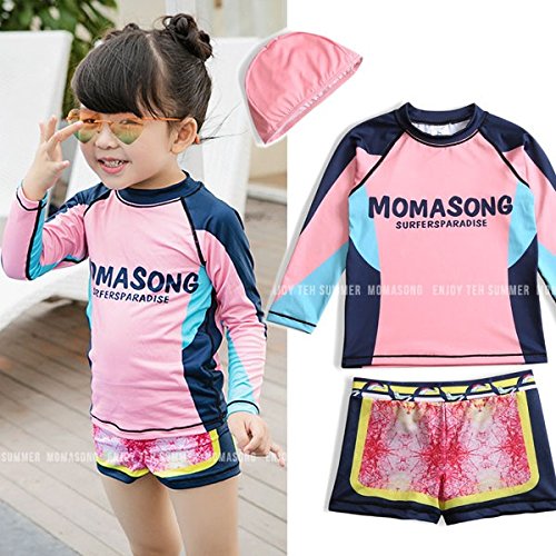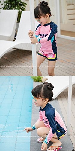 【 韓国スタイル子供服】 キッズ水着 アルファベットプリント柄 女の子★子供Sandy beachセット Pink,100cm