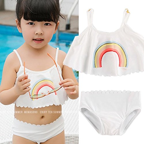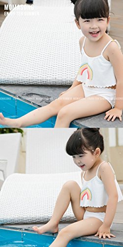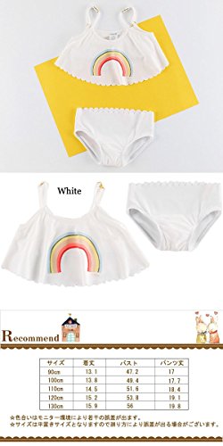 【 韓国スタイル子供服】 キッズ水着 キッズビキニ 可愛いレインボー 虹 柄Sandy beachビキニセット White,110cm