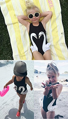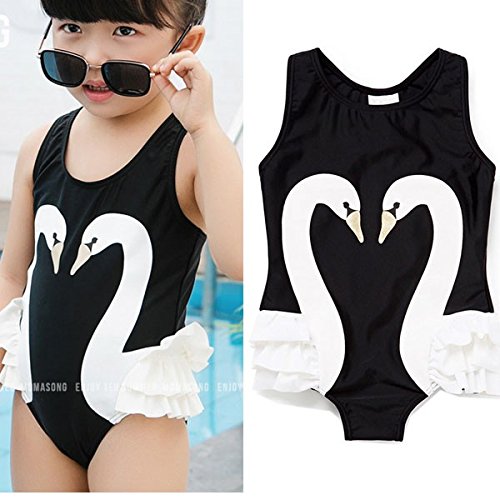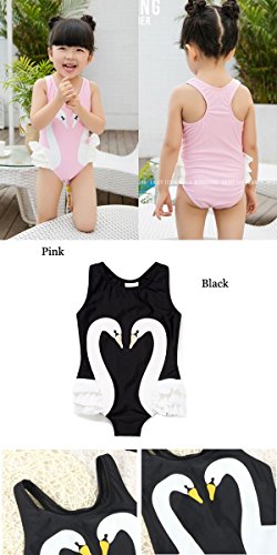 【 韓国スタイル子供服】 キッズ水着 キッズビキニ 可愛い白鳥柄Sandy beachビキニセット 全2色 Pink,130cm