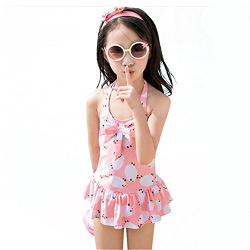 送料無料 水着 ワンピーススイムウエア 子供 女の子 子供水着 みずぎ アニマル 水着 オシャレ ワンピーススイムウエア かわいい ピンク (L, ピンク)