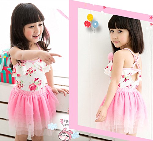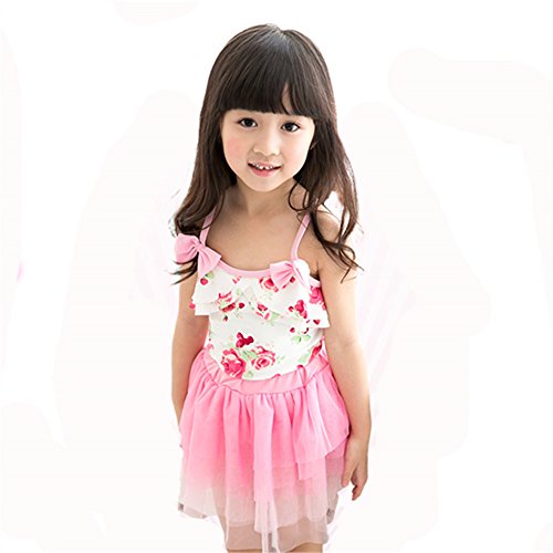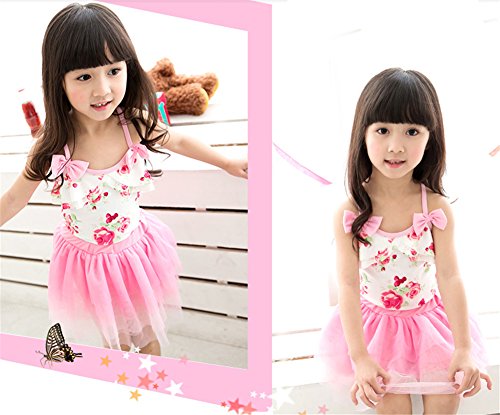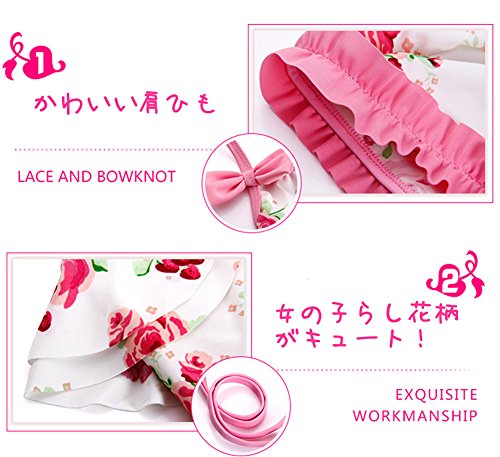 送料無料 子供水着 キッズ水着 水着 女の子 ワンピーススイムウエア 花柄 リボン 女の子 子供水着 みずぎ かわいい 帽子付き 水着 オシャレ ワンピーススイムウエア ピンク (XL, ピンク)